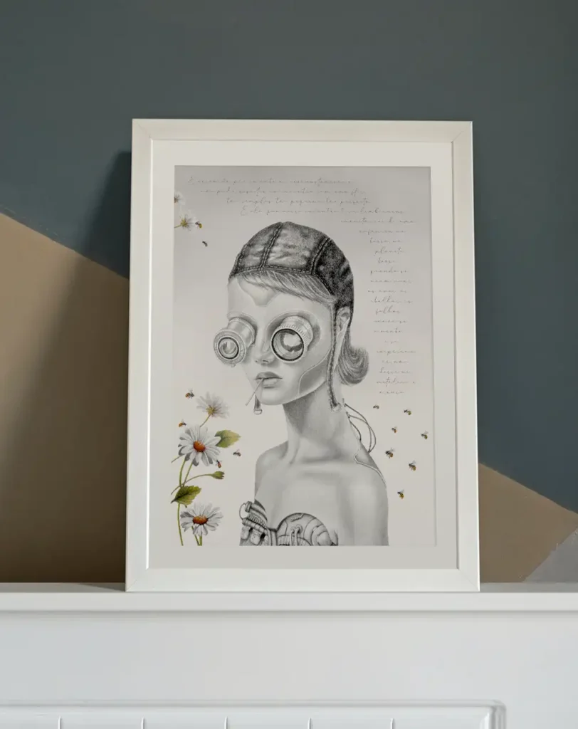Quer conhecer como essa jornada evoluiu? Visite esta primera obra da minha coleção de arte cyborg criada inteiramente com lápis grafito. Cada peça é uma exploração única do realismo aplicado à ciência ficção, perfeita para quem busca arte colecionável que une técnica tradicional com visões futuristas. Ideais para decoração de ambientes que valorizam a convergência entre arte clássica e sci-fi.