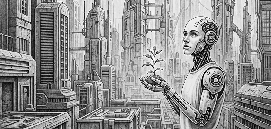 Essa pergunta me persegue desde que comecei a criar arte futurista com lápis grafito. Cada traço que faço é uma tentativa de entender essa fronteira invisível entre o que somos e o que podemos nos tornar.